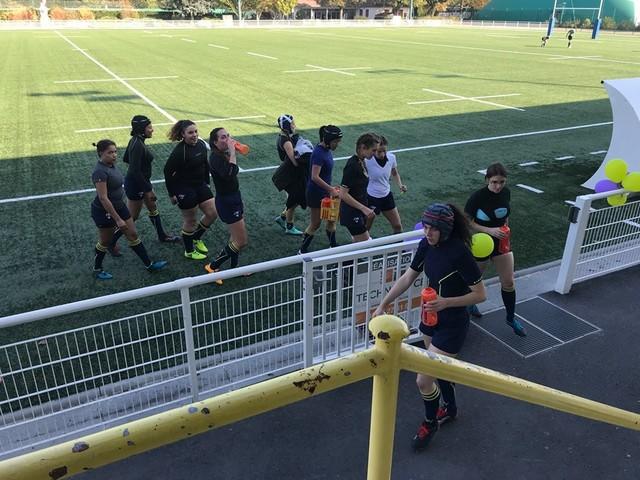 On échange quelques mots, eux aussi mettent en avant les joueuses ultra-soudées, avec un coach qui fédère le groupe. Certaines « pourraient jouer au-dessus, mais elles s'éclatent ici ». Pensez-donc, elles ont failli battre Arras au dernier match (la deuxième équipe de la région, d'après les supporters) ! Les filles se voient en-dehors du rugby et créent une réelle émulation. Cela n'empêche pas que l'équipe, une fois encore, a été fortement changée à l'intersaison. En revanche, elles sont 40 inscrites ! Largement assez pour faire tourner, et avoir des remplaçantes.
