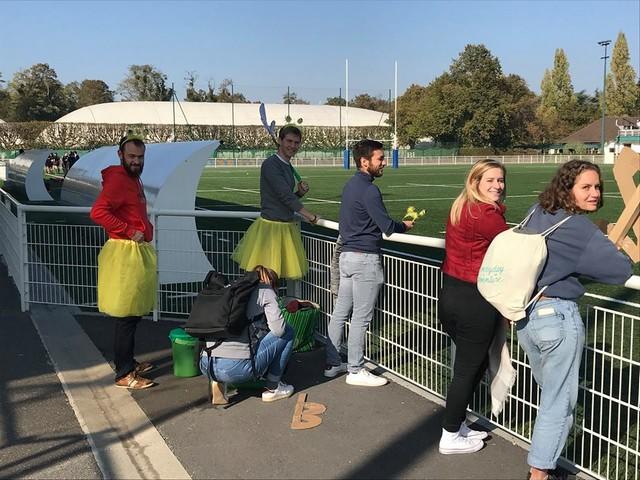 Je laisse les différents encadrements avec l'arbitre pour échanger sur le match à venir, et me rapproche des supporters lillois, qui arrivent autour du terrain. C'est peu de dire qu'ils sont préparés ! Venus dans le bus des joueuses, ils se vêtent de l'uniforme réglementaire pour supporter les Z'abeilles du LORC : tutu jaune et serre-tête antennes. Ils sortent aussi de leur sac le manuel du supporter, « Les Ultras Zab », recueil des chansons du club pour pousser leurs joueuses. Bel investissement !