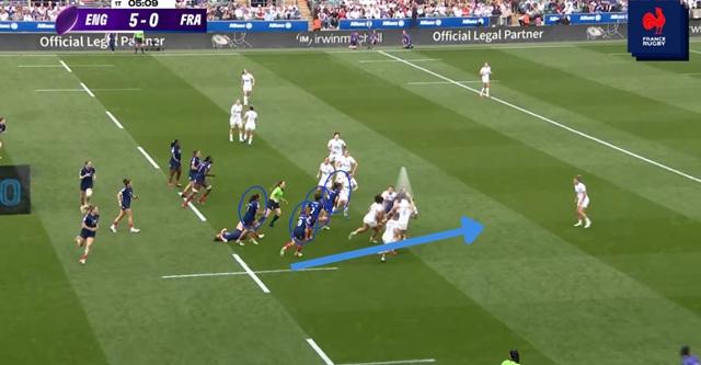 Si on connaît les aptitudes et les qualités des joueuses britanniques sur les phases de conquêtes, plus particulièrement les mauls après les touches. Gaëlle Mignot et son staff ont décidé de défier les Anglaises au centre du terrain, avec des relais dans l’axe. Des picks and go réalisés avec beaucoup de vitesse, qui ont permis aux Tricolores de jouer après contact et de mettre en difficulté cette équipe, très bien organisée défensivement.