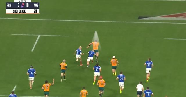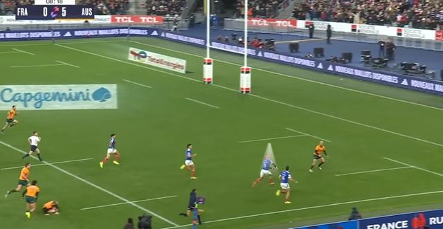 Certes, les Wallabies sont réputés pour leur jeu offensif, mais les hommes de Joe Schmidt ont réussi à marquer des essais à zéro passe, sans trop de difficultés. À l’image de celui de Josh Nasser en fin de match, après une pénalité rapidement jouée à la main à cinq mètres de l’en-but du XV de France, suite à un plaquage manqué de Thomas Laclayat. Mais l’action la plus marquante reste l’essai en solitaire du pilier Angus Bell. Après avoir rattrapé la passe après contact de Fraser McReight, le joueur des Waratahs raffute Thomas Ramos, puis échappe à Julien Marchand et résiste au retour de Maxime Lucu et Jean-Baptiste Gros. Un exploit qui met en valeur l’explosivité du pilier de Sydney, mais également le manque de pression défensive des Français proche de la zone de ruck.