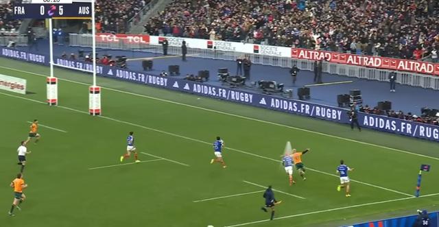 😍 Petit coup de pied par-dessus pour lui-même : Louis Bielle-Biarrey signe un doublé samedi soir face à l’Australie !