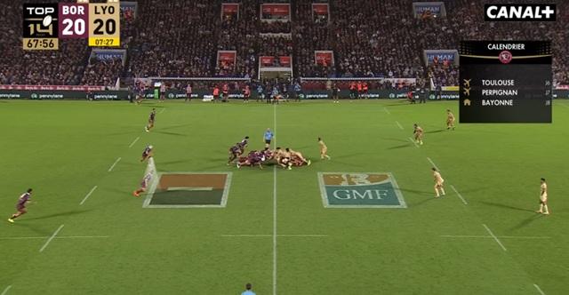 Ce match peut être découpé en trois grandes parties à travers l’indiscipline des deux équipes. Les vingt premières minutes en faveur de Bordeaux, avec un essai en début de match sur maul de Maxime Lamothe qui illustre la domination des avants girondins. Mais aussi les failles de la défense lyonnaise, laissant beaucoup trop d’espaces à leurs adversaires du jour, comme sur l’essai de Nicolas Depoortère.
