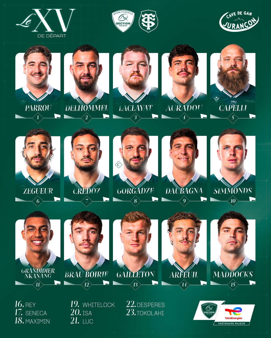 À Pau, c’est quasiment une équipe complète qui manque à l’appel. Tumua Manu et Thomas Souverbie ont rejoint l’infirmerie cette semaine pour commotion, et s’ajoutent à la longue liste : Attissogbe, El Bibouji, Klemenczak, Laporte, Robson, Tlili, Tuipulotu et Zabala.
