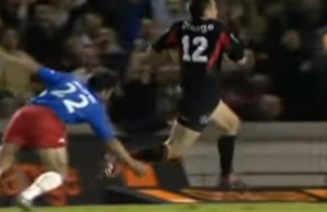 - 6ème minute : Coup d’envoi des Écossais. Jelonch récupère et reprend 30 mètres d’élan pour se re-crasher sur un mur sans airbag. L’écossais Gilchrist re-plante son épaule dans la tronche de Jelonch. Cette fois, l’arbitre siffle. Il est en effet interdit de déboiter un type deux fois dans la tête consécutivement. L’Ecossais prend un carton rouge.