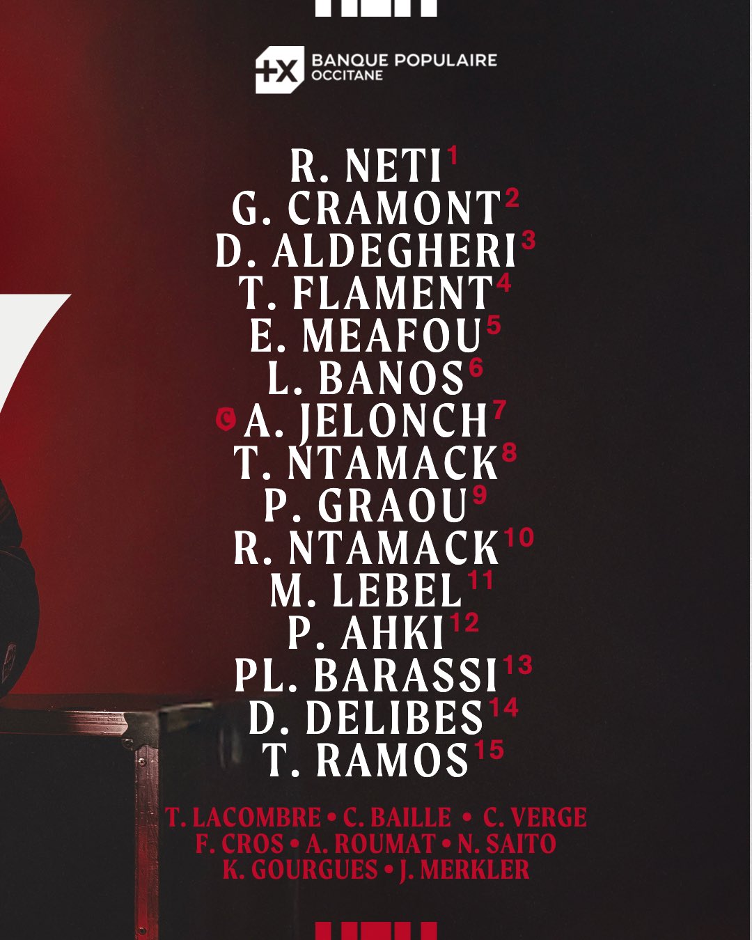 Sur le banc, on note la présence de jeunes comme Gourgues et Vergé, aux côtés de valeurs sûres (Baille, Cros). Saito, très en vue en préparation, pourrait dynamiter la fin de match à l'instar de Lacombre et Roumat.