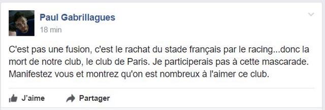 Les preuves ? La saison prochaine, la nouvelle entité évoluera à l'Arena 92. Elle sera entraîné par Laurent Labit et Laurent Travers. Son président ? Pas la peine de tourner autour du pot : il s'agira de Jacky Lorenzetti, qui déclare tout de même qu'il dirigera "en alternance" avec Savare. Enfin, l'équipe - qui n'a pas encore de nom - s'entraînera sur les installations du Racing 92. Paul Gabrillagues, 2e-ligne du Stade Français, semble être d'accord :