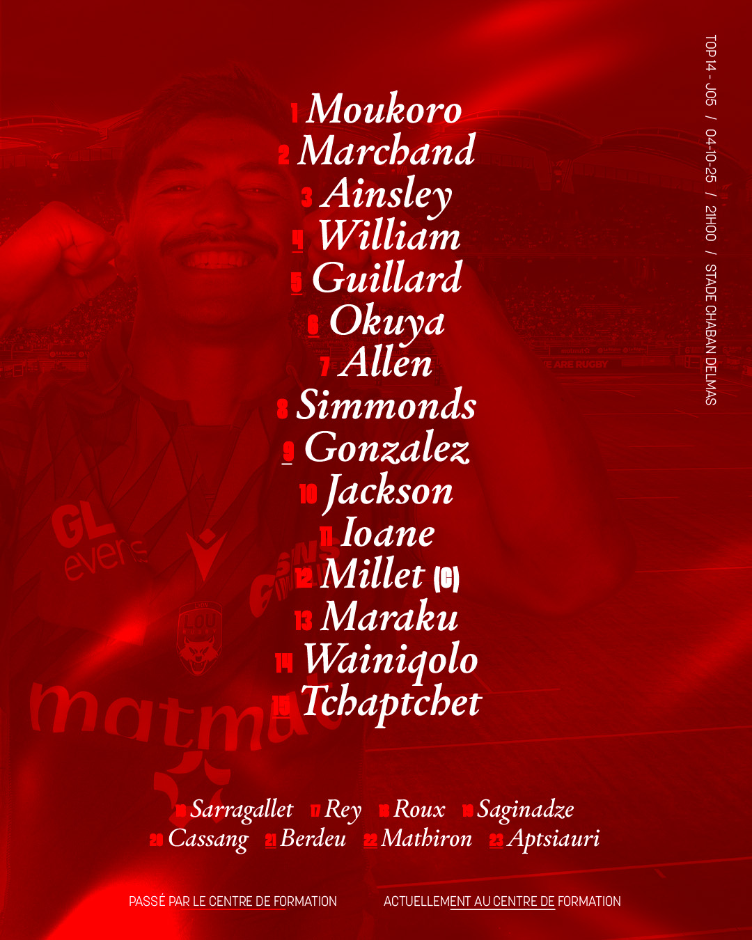 Côté lyonnais, les nouvelles ne sont pas plus réjouissantes : Couilloud, Masi, Gouzou, Méliande, Chat et Gomes Sa sont tous sur le flanc. Seul rayon de soleil pour le LOU : le retour Maraku.