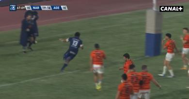 13-9 seulement à la mi-temps. Et les Agenais ne se faisaient pas prier pour revenir dans la rencontre et prendre le score. Sur un ballon de récupération très vite exploité sur les extérieurs, Paul Graou tape au pied et les Narbonnais sous pression concèdent une pénalité à cinq mètres de leurs en-but. Ce dernier jouait vite et envoyait son capitaine Farré à hauteur dans l'en-but. Jason Robertson, demi d'ouverture Narbonnais, redonnait l'avantage à son équipe, mais à un quart d'heure de la fin, Ramoka se montrait une nouvelle fois décisif en arrivant lancé dans la ligne adverse (67').