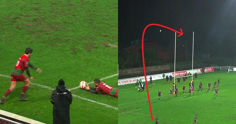 Dans ce match, les ingrédients ont été mis et un joueur comme Pierre Bernard, passé par Bordeaux-Bègles et Toulon notamment, est important dans la gestion au pied. Après un bon travail de ses avants, le numéro 10 hérite d'une passe le long de la ligne pour aplatir. Il faut maintenant transformer, le vent souffle fort et les poteaux ne cessent de bouger. Pas de soucis, Peio envoie un ballon brossé qui fuit largement les poteaux pour au final être ramené par le vent. Essai transformé. La dernière fois que ton ouvreur a réussi ce geste, vous étiez devant Rugby 08 un mercredi après-midi après le collège. Splendide.